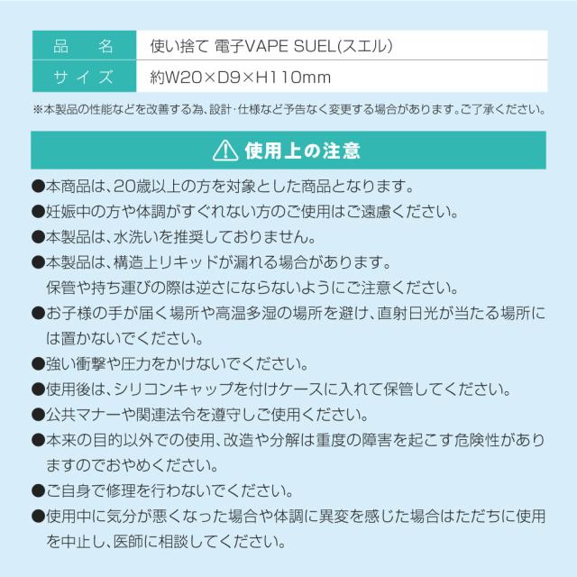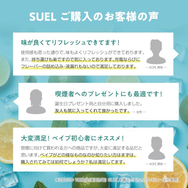 メーカー直営店 電子タバコ SUEL タール ニコチン0 リキッド 使い捨て 水蒸気 メンソール ベイプ 本体 VAPE スエル シーシャ 人気 害なし リフレッシュ 喫煙 禁煙 種類 副流煙なし フレーバー ミント ブルーベリー おすすめ 送料無料