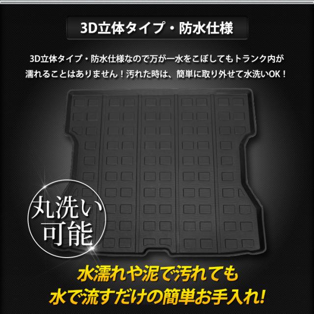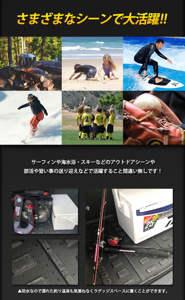 車種専用完全オリジナルデザインの3Dラゲッジマットが新発売 車種専用なので隅々までぴったりフィット! 経験豊富な専任のスタッフが一から製作しているので、他社製品にはないデザインと仕上がりをお届けします。 本品は置くだけだけの簡単設置で汚れや傷からトランク内を保護します。 3Dの立体デザインで縁部分は数センチの立ち上がりがあるので水や汚れをしっかりキャッチ! 完全防水なのでお手入れも簡単! 水や汚れは軽いものならウエスなどで拭くだけでOK! 全面的に汚れた場合は丸洗いも可能なので衛生的です。 新素材の熱可塑性エラストマー(TPE)を使用。 弾力があり、曲げたりすることも可能なので、お車からの取り外しも容易です。 |