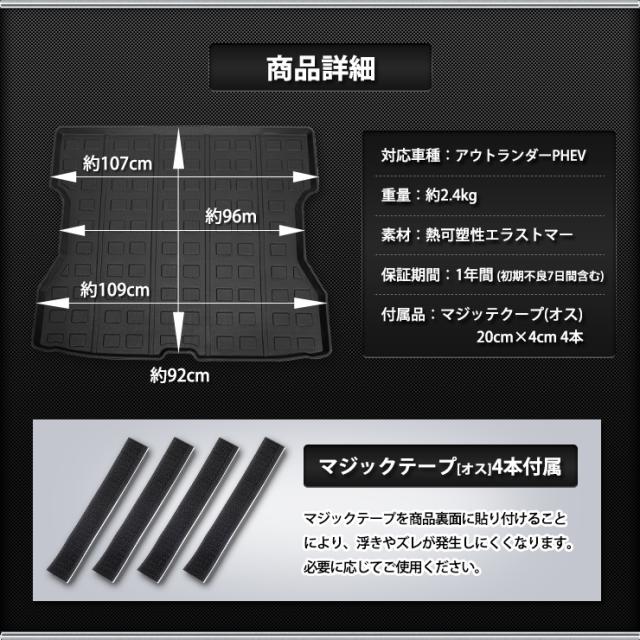 アウトランダー PHEV 専用 3D スポーツマット ラゲッジマット 防水 ゴミ 汚れ 掃除 キズ 防止 カバー保護 OUTLANDER カスタム パーツ アクセサリー ドレスアップ 三菱 ミツビシ MITSUBISHI