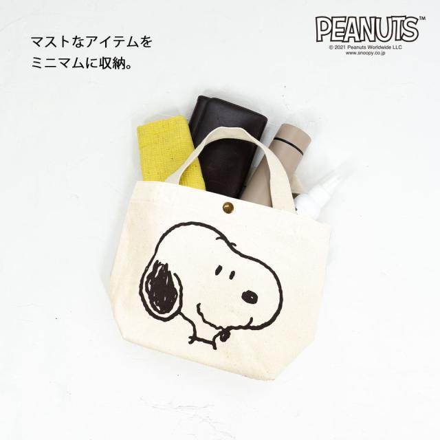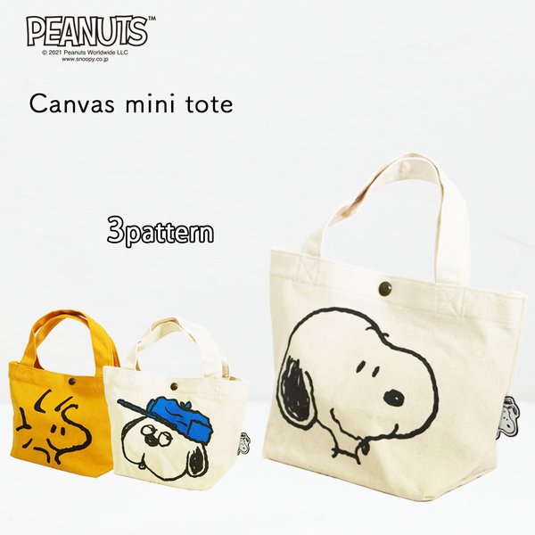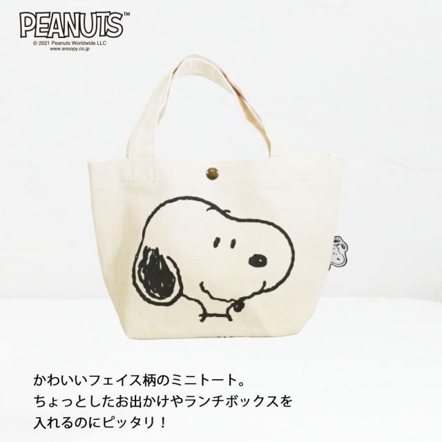 スヌーピー PEANUTS ミニトート 綿100% ポーチ 小物入れ お散歩 お出かけ 旅行 スヌーピーフェイス オラフフェイス ウッドストックフェイス レディース 通学 通勤 カジュアル ミニサイズ キャンパス生地 トートバッグ