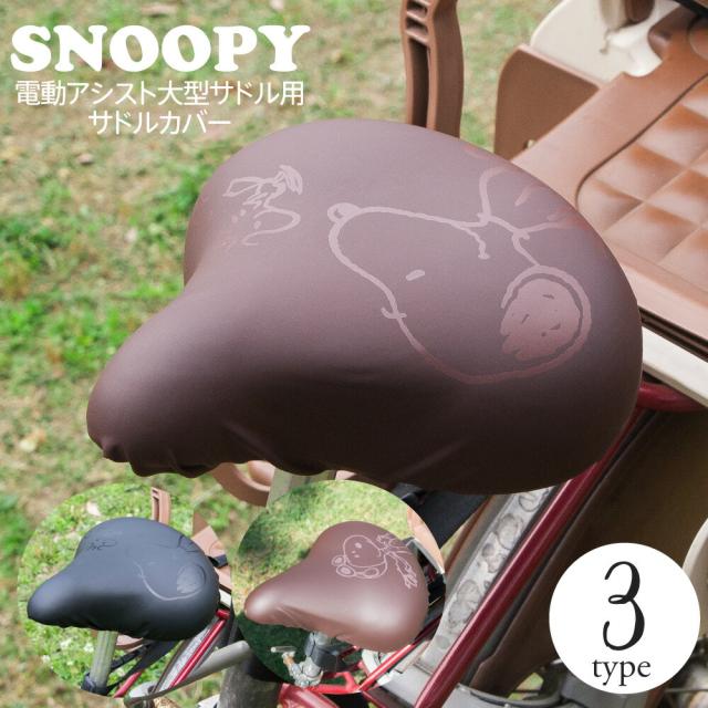 大型サドル専用 サドルカバー のびーるチャリCAP ビッグ スヌーピー フレンズ ブラウン ブラック フライングエース 自転車 電動自転車 アシスト 防水 雨 自転車カバー かわいい キズ 汚れ ギフト プレゼント