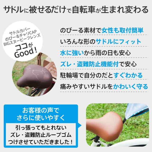当店売れ筋商品No.1「大型サドル専用 のびーるチャリCAP Big スヌーピーフレンズ/フレンズブラック」。