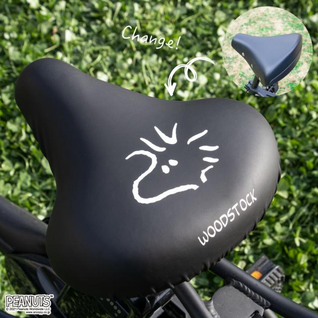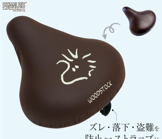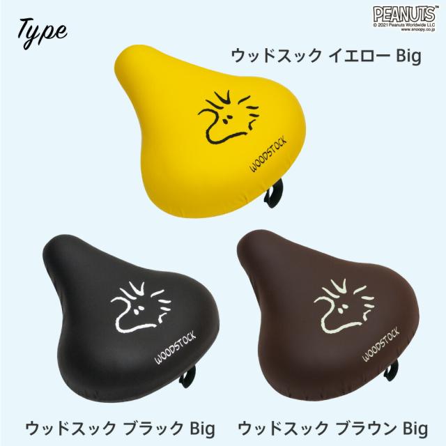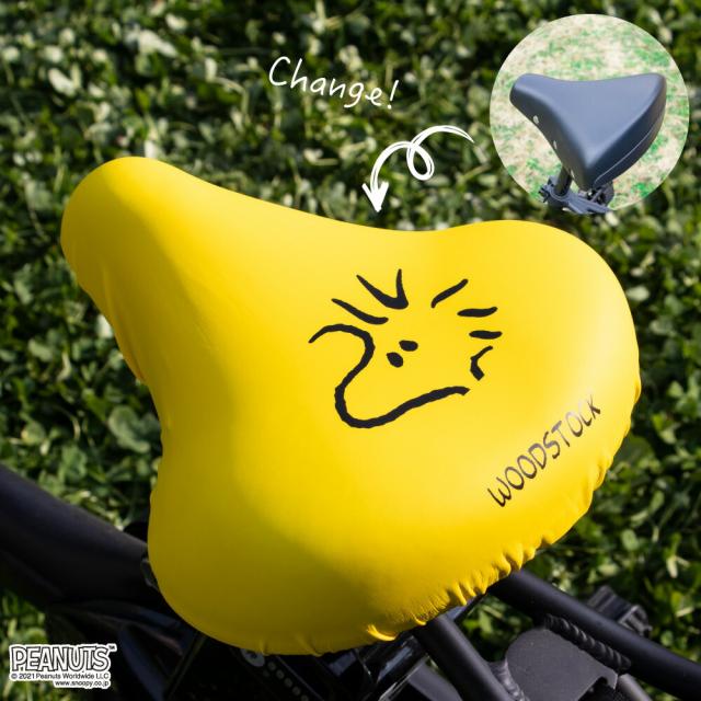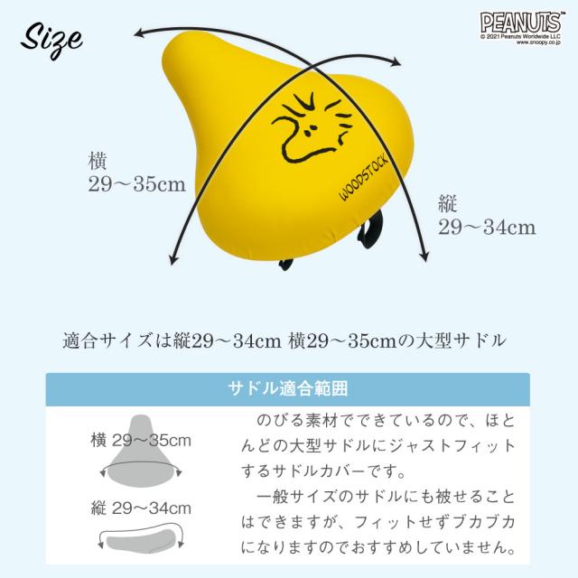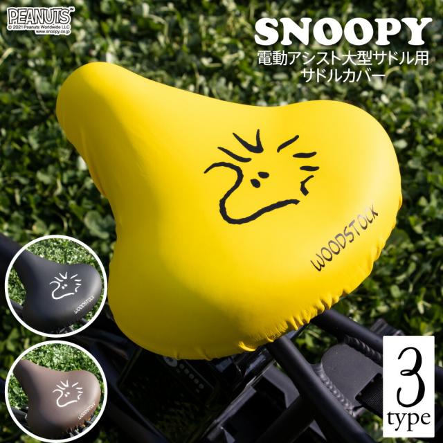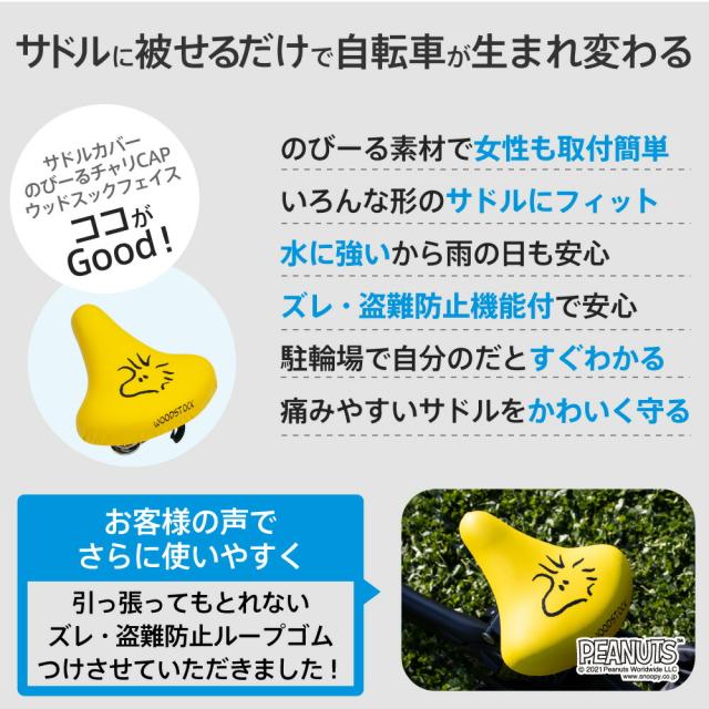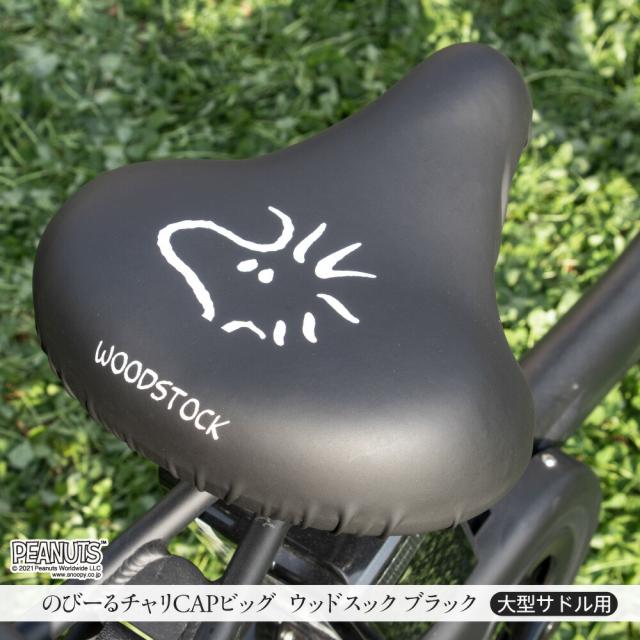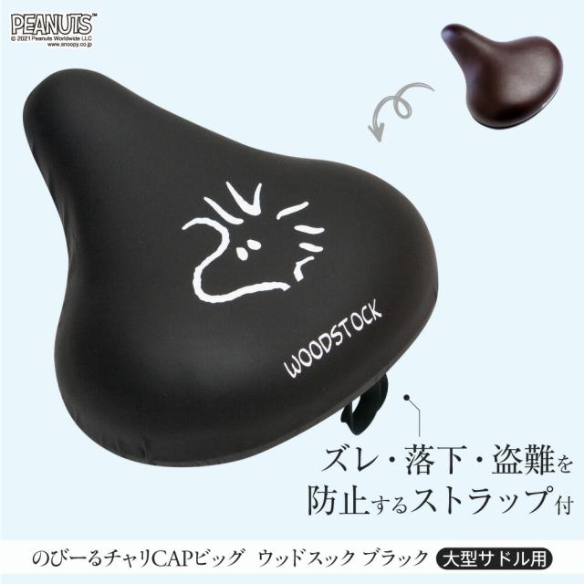 サドルカバー のびーるチャリCAP BIG ビッグ スヌーピー ウッドストック フェイス 大型サドル専用 ブラック ブラウン イエロー 自転車 電動自転車 アシスト 防水 雨 自転車カバー かわいい キズ 汚れ ギフト プレゼント 黒 茶 黄