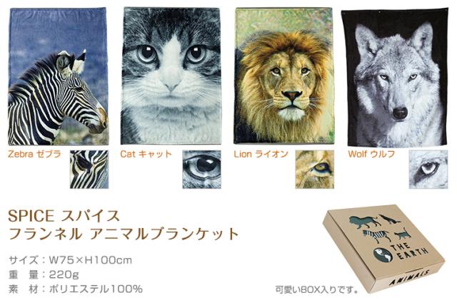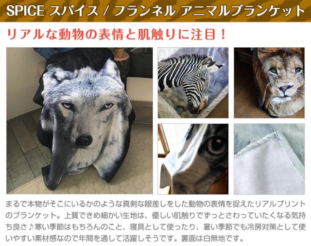 【特徴】まるで本物がそこにいるかのような真剣な眼差しをした動物の、表情を捉えたリアルプリントのブランケット。
