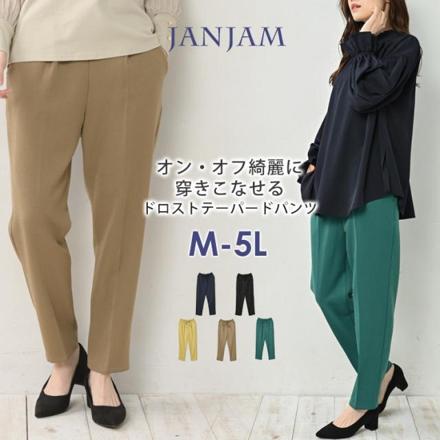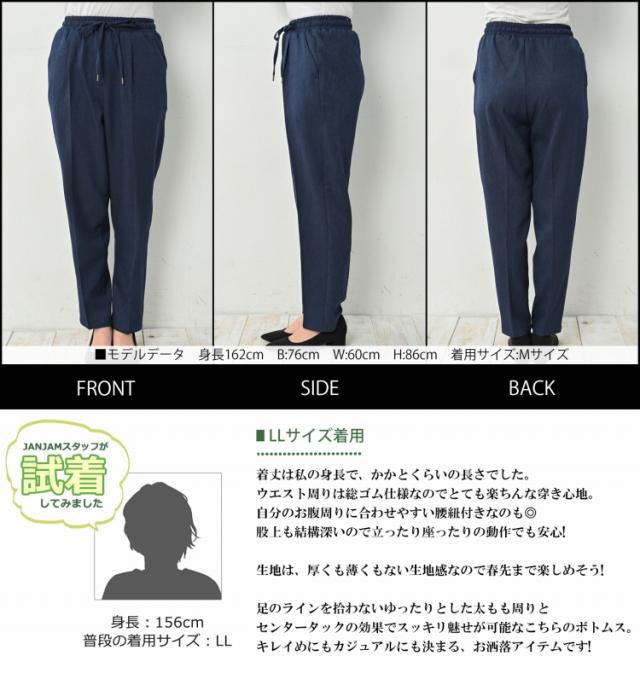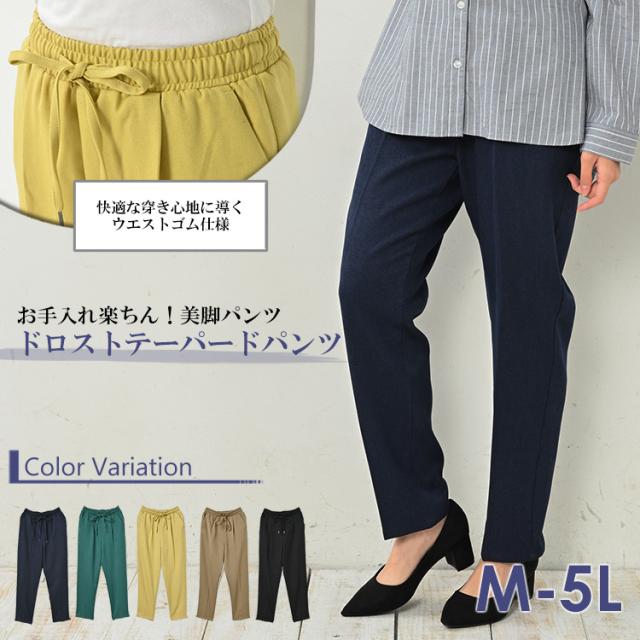 送料無料※沖縄/北海道対象外 大きいサイズ レディース テーパードパンツ ドロスト ロング丈 ウエストゴム ボトムス M/LL/3L/4L/5L ゆったりサイズ ぽっちゃり女子 プラスサイズ