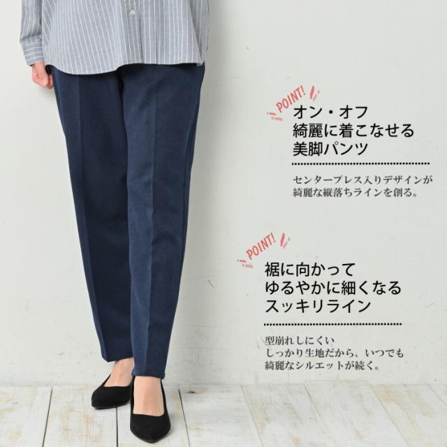 おうちで洗えてお手入れ楽ちん美脚テーパードパンツ。