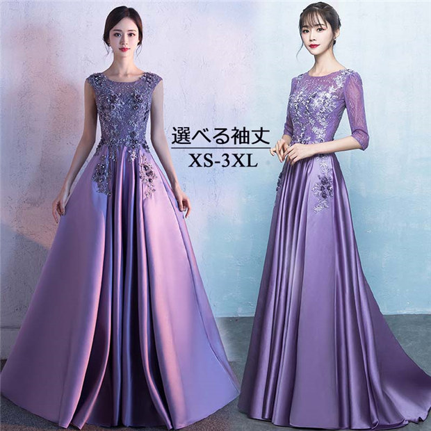 【送料無料】イブニングドレス ロングドレス カラオケドレス 衣装 ノースリーブ 五分袖 パープル ステージドレス パーティードレス