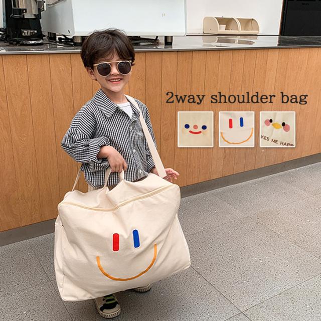新作 2way スマイルデザイン スクエア キャンバス ショルダーバッグ レディース メンズ キッズ 子供 トートバッグ キャンバストート 帆布 斜めがけ 肩掛け カバン a4 大容量 大きめ おしゃれ かわいい