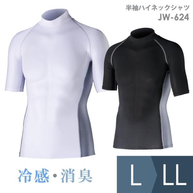 おたふく手袋 作業服 冷感インナー 半袖ハイネックシャツ JW-624 ブラック ホワイト L/LL
