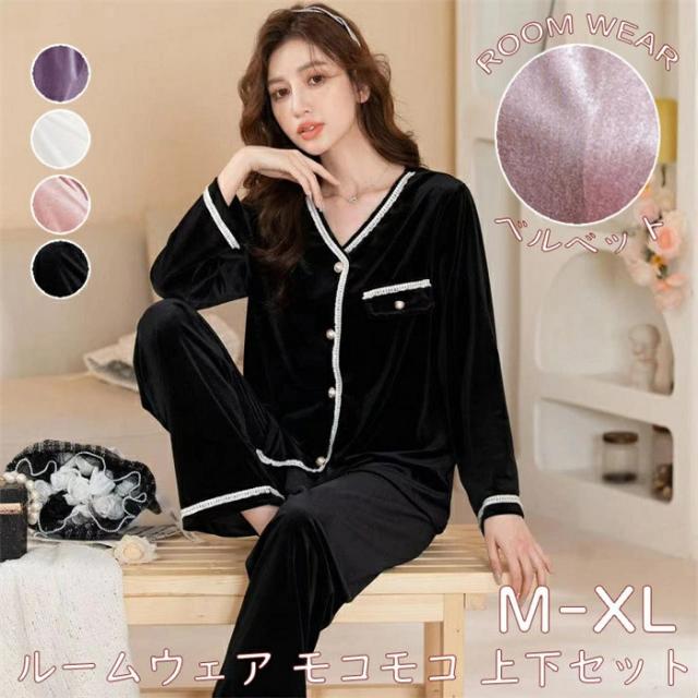 パジャマ レディース モコモコルームウェア レディース 秋冬 部屋着 長袖 パジャマ レース ベルベットルームウェア 大きいサイズ 暖かい 上下セット 大人可愛い 厚手パジャマ 女性 部屋着 寝巻き オシャレ
