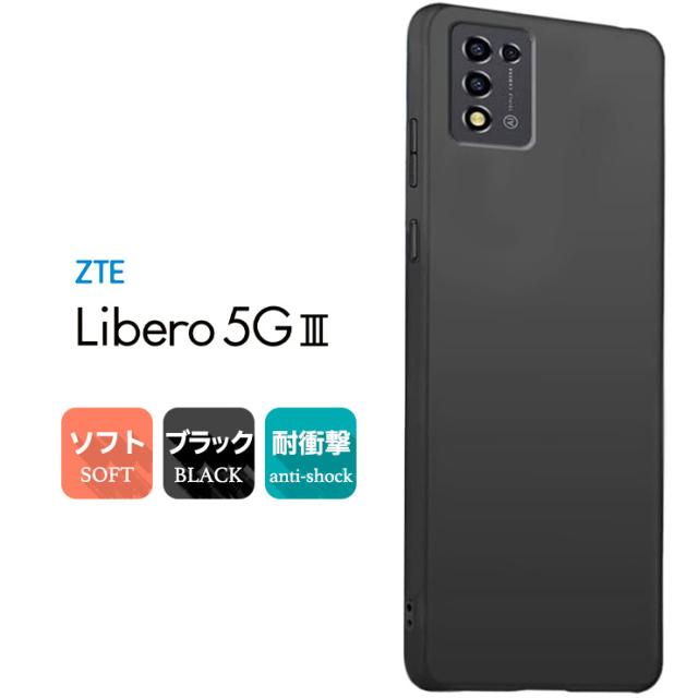 Libero 5G III ケース カバー ブラック 黒 ソフトケース マット TPU 無地 スマホ シンプル 衝撃吸収 指紋防止 薄型 軽量 スマホケース リベロ スリー 3 Y!mobile Ymobile ワイモバイル サラサラ ツヤなし スマホカバー 密着痕予防 おすすめ 送料無料 携帯 リベロ5giii 5g3