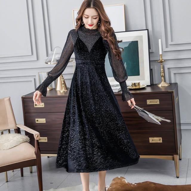 ドレス ベロア ワンピース レディース ジャンパースカート ツーピース シアー トップス 大人 きれいめ 春秋