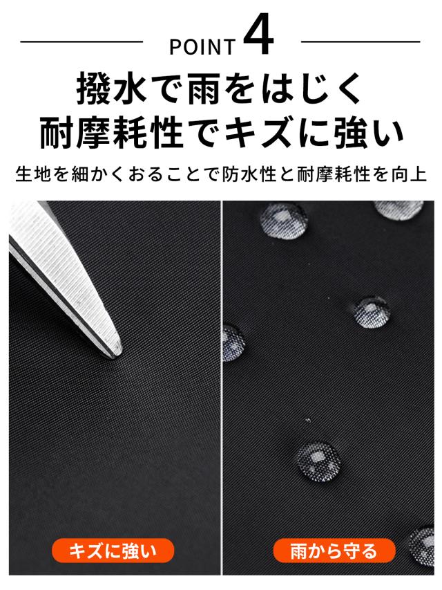 高密度オックスフォード布を採用したことで水をはじく撥水性、キズに強い耐摩耗性を兼ね備えている