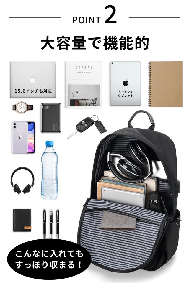 大容量で機能的。15.6インチのパソコンも収納できる大容量性