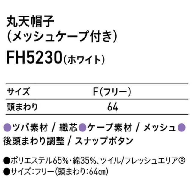 衛生帽子 丸天帽子(メッシュケープ付き) キャップ FH5230 サーヴォ SERVO フードファクトリー 食品工場白衣