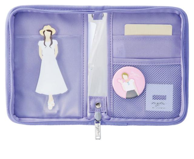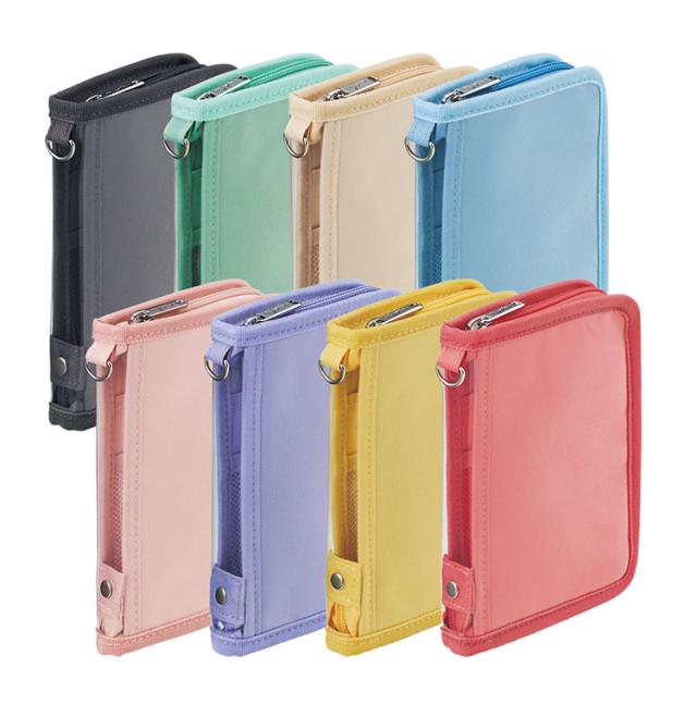 推し活グッズの持ち運びに便利!付属の透明シートをデコレーションすると自分だけのオリジナルデザインのポーチが作れます。アクスタや缶バッジ・カード(トレカ・会員証など)・L版写真が入れられます。内側は中身が見える透明ポケットとトレカや会員証が入る不透明ポケット、缶バッジが取り付け可能なメッシュポケットが付いています。本体背上部にはストラップが付けられるD型リング付きです。推し活グッズ以外にもカードポーチや文具小物の収納、パスポートケースとしてもご使用いただけます。