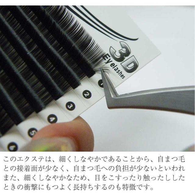 3Dボリュームは、超極細なエクステで、今までにないほど軽く柔らかいのが特徴です。