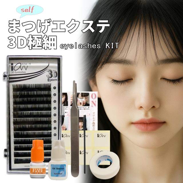 3D 極細 eyelashes KIT アイラッシュ キットマツエク キット リペア メンテナンス グルー2ml グルーシート ツイザー まつ毛ブラシ テープ ジェルリムーバー セルフ解説付き セルフ セット