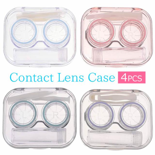 カラコンケース 4色分け クリアコンタクトレンズケース 4個セット 外出 アウトドア 旅行 携帯便利 洗浄液ミニボトル付き AS75504S