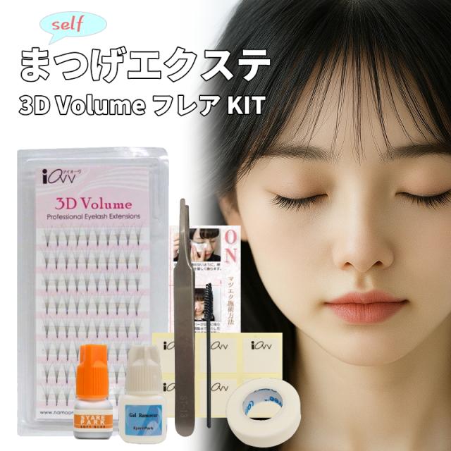 3D Volume KIT セルフ マツエク キット 3D ボリューム 極細0.07mm フレア タイプ 縦型 3本 4本 5本 グルー2ml グルーシート ツイザー まつ毛ブラシ テープ ジェルリムーバー セルフ解説付き