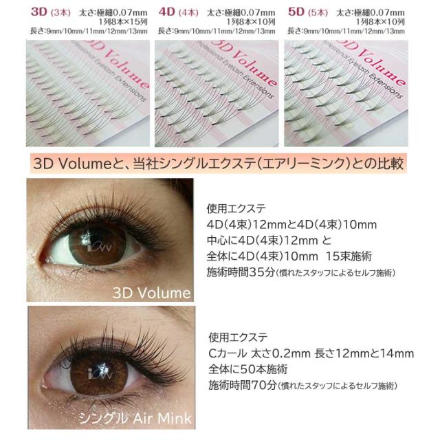 3Dボリュームは超極細なエクステで今までは考えられないほど柔らかいのが特徴です。