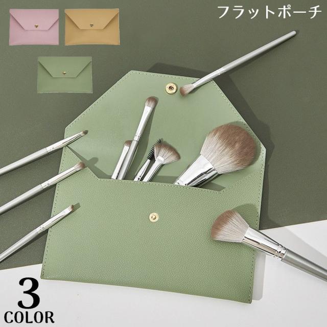 フラットポーチ 化粧ポーチ メイクポーチ コスメポーチ マルチケース 小物入れ 携帯 トラベル 旅行 大容量 薄型スリム レザー