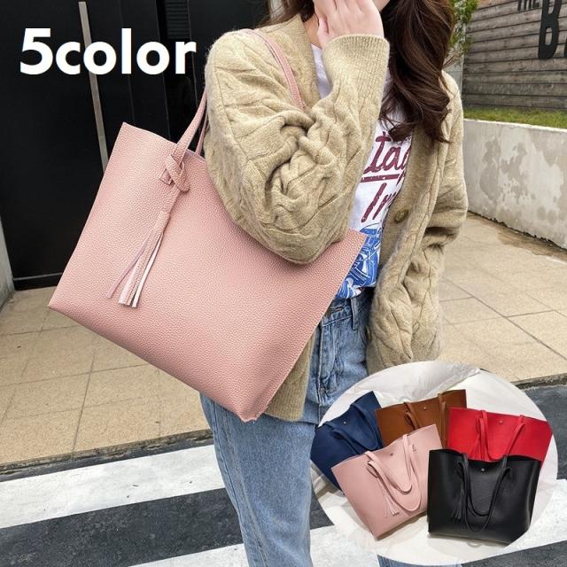 トートバッグ 手提げかばん レディース 女性 鞄 カバン 肩掛け ハンドバッグ マグネットボタン フェイクレザー タッセル付き
