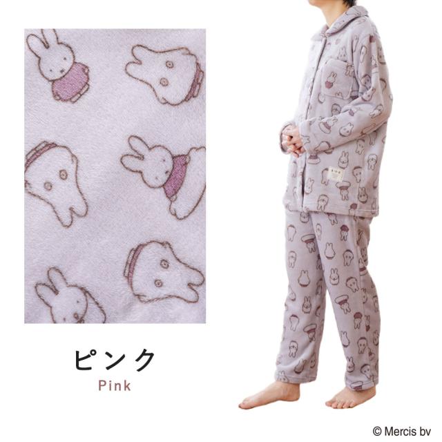 [ keyword | ふわもこプレミアム パジャマ ミッフィー レディース 部屋着 ルームウェア セットアップ 長袖長ズボン ブルーナ ふわふわ 起毛 フリース 前開き ボタン 婦人 秋冬 節電 あったか 暖かい節電 ピンク グリーン ]