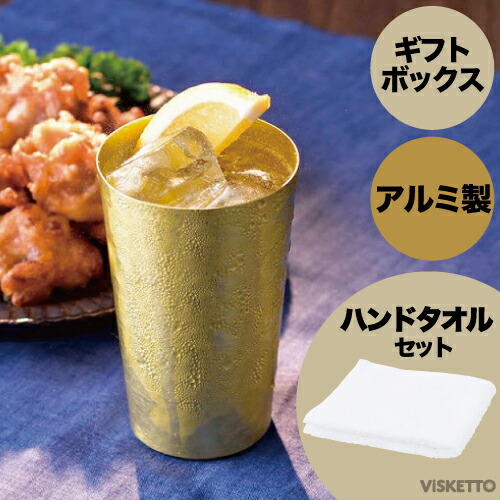 ■在庫限り■ ゴールドタンブラー&ハンドタオル ギフトセット (コップ 冷蔵 ビアグラス 焼酎 ビール 乾杯 誕生日 ご褒美 飲みごろ 父 母 先輩 上司 )