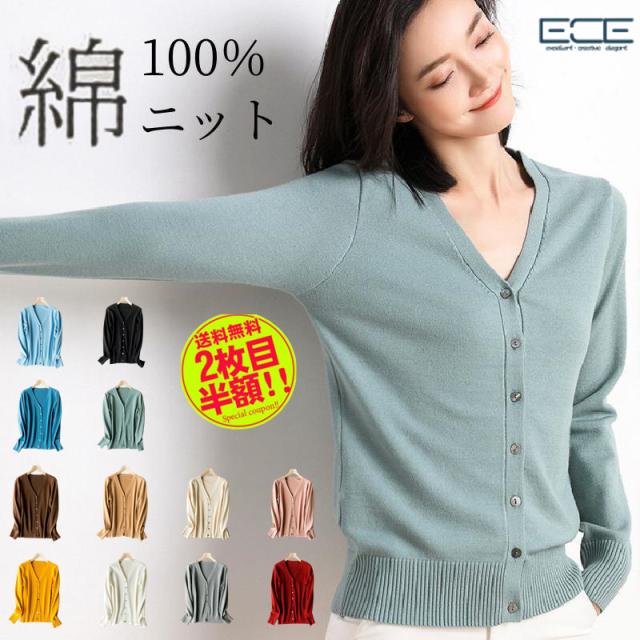 【2枚目半額クーポン】ニット セーター レディース フリーサイズ トップス 薄手 綿100% 大きいサイズ ゆったり 送料無料