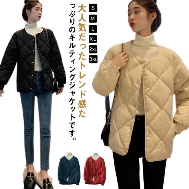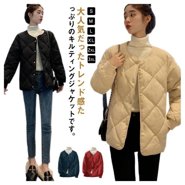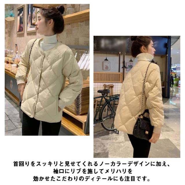 キルティング ダウンジャケット ノーカラー レディース 秋 冬 アウター ダウンコート ブルゾン 大きいサイズ ジャンパー 上着 長袖 秋冬 冬服 軽量 防寒 おしゃれ かわいい 軽い ファッション 送料無料