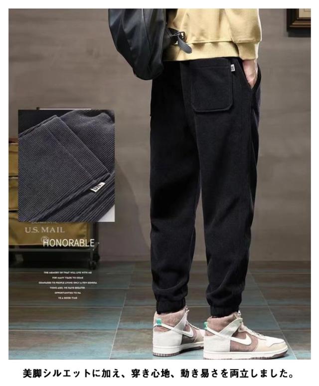 コーデュロイ サルエルパンツ メンズ 裏起毛 ズボン イージーパンツ カーゴパンツ 大きいサイズ ジョガーパンツ スウェットパンツ 厚手 防寒 暖かい 作業服 ルームウェア ポケット ゆったり 秋冬 カジュアル 送料無料