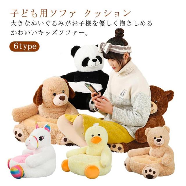 ソファー キッズ 1人掛け ソファ ぬいぐるみ クッション ローソファー クマ アヒル パンダ ユニコーン アニマル 座椅子 フロアソファー 椅子 背もたれ 抱き枕 ふわふわ ペット 子供用家具 子供部屋 休憩 読書 可愛い おしゃれ