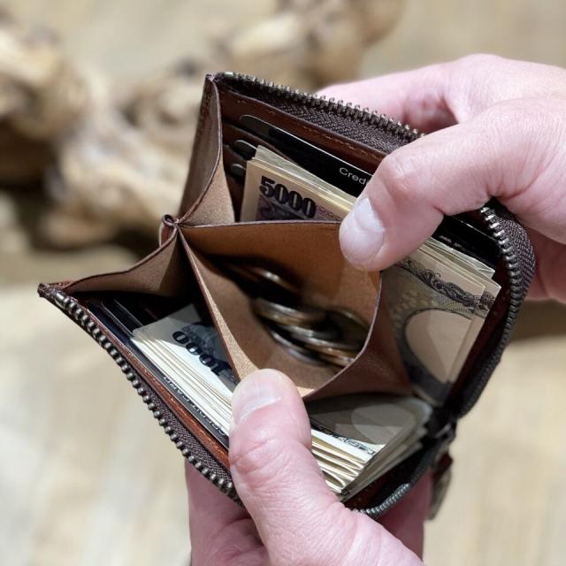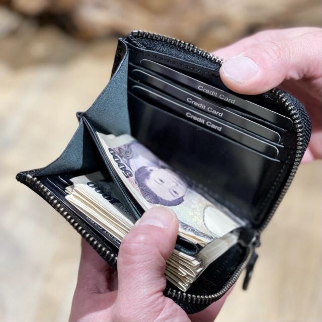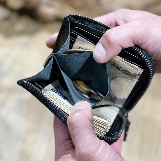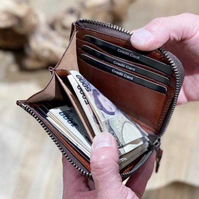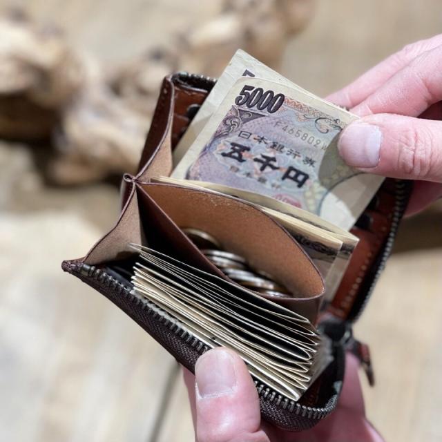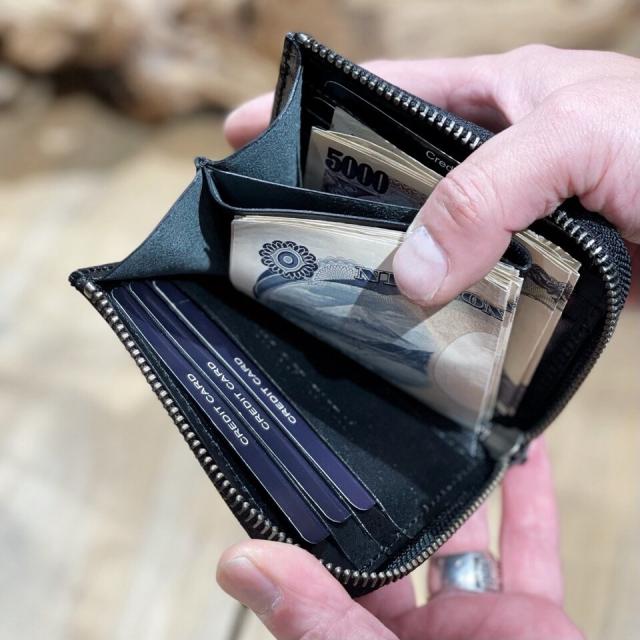 ミニマムな薄い財布に大容量を掛け合わせたコンパクトな財布が出来上がりました。