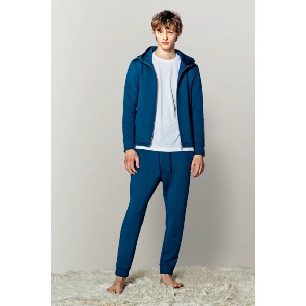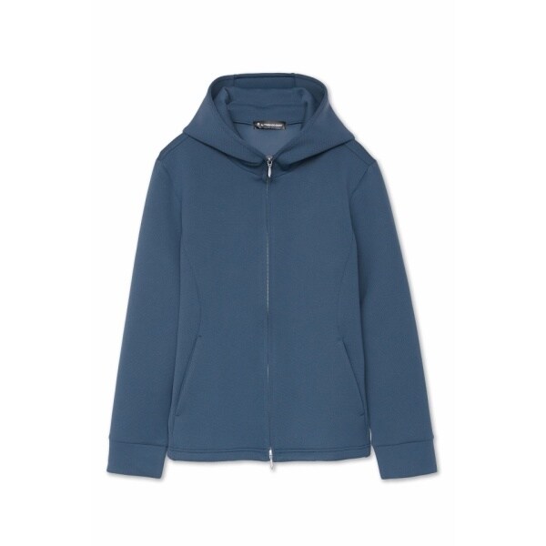 オックス組織調のダンボールニットを使用したジップアップパーカ。