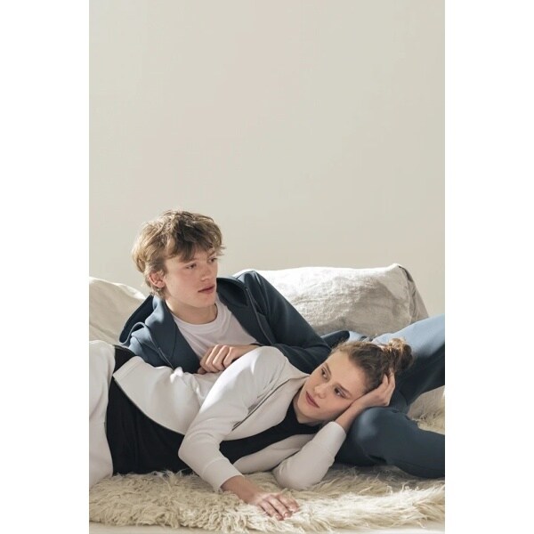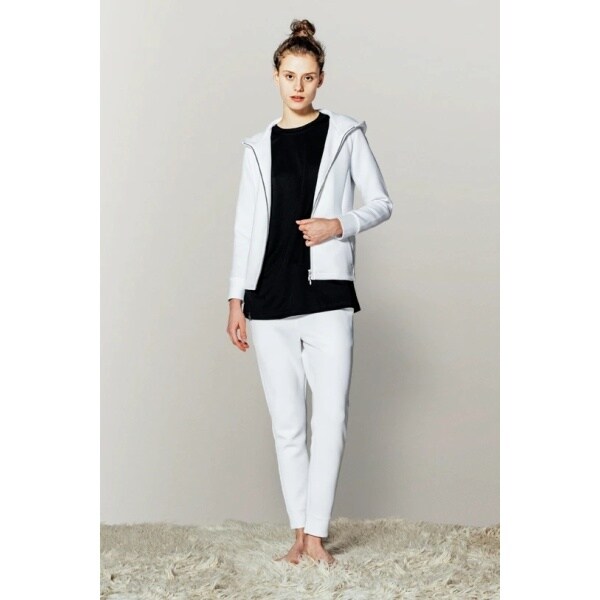 さりげないハイネックフードのシルエットと、ボディにディテールカッティングを入れミニマルな印象に仕上げています。