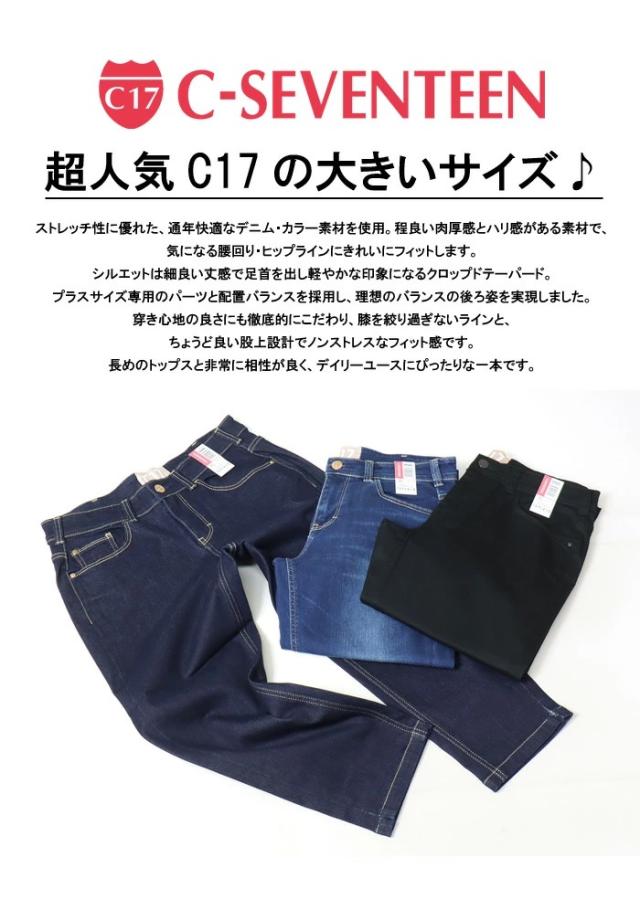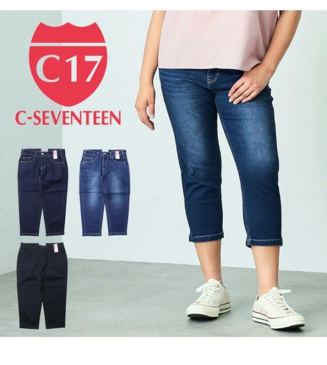大きいサイズ C17 C-SEVENTEEN レディース クロップドテーパード クロップドパンツ デニム ジーンズ ストレッチ シーセブンティーン C-17 送料無料 CR350