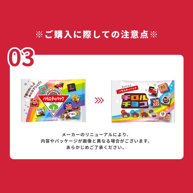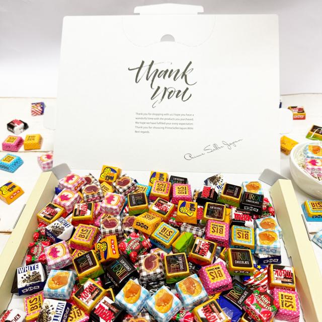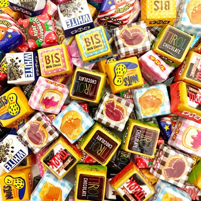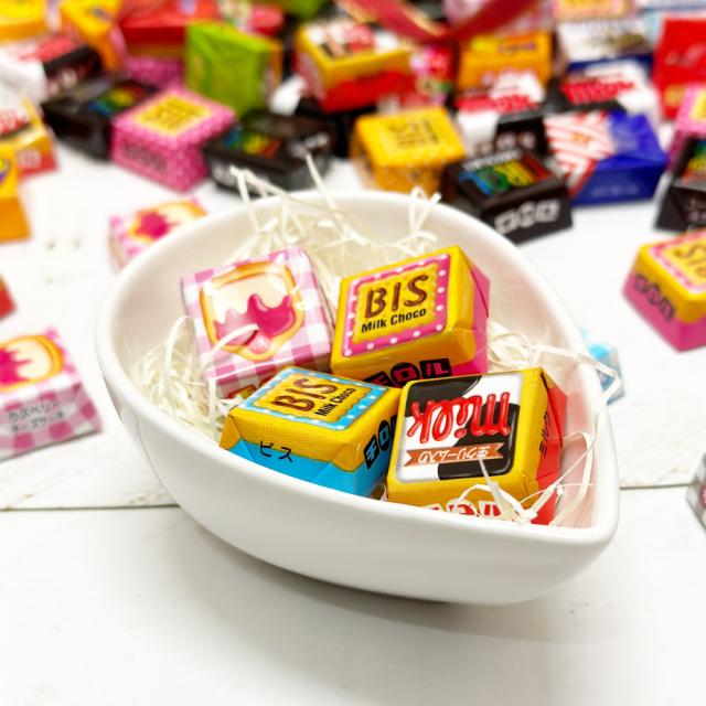 ■その他、ホワイト&クッキー、ミルク、ビス、アーモンドの4種類のチロルチョコも入っています。(季節や在庫状況により内容が変更になる場合がございますので予めご了承下さい。)