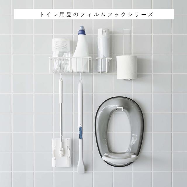 フィルムフックでトイレタンクやタイル・手洗台に浮かせて設置できるトイレ用品収納シリーズ。