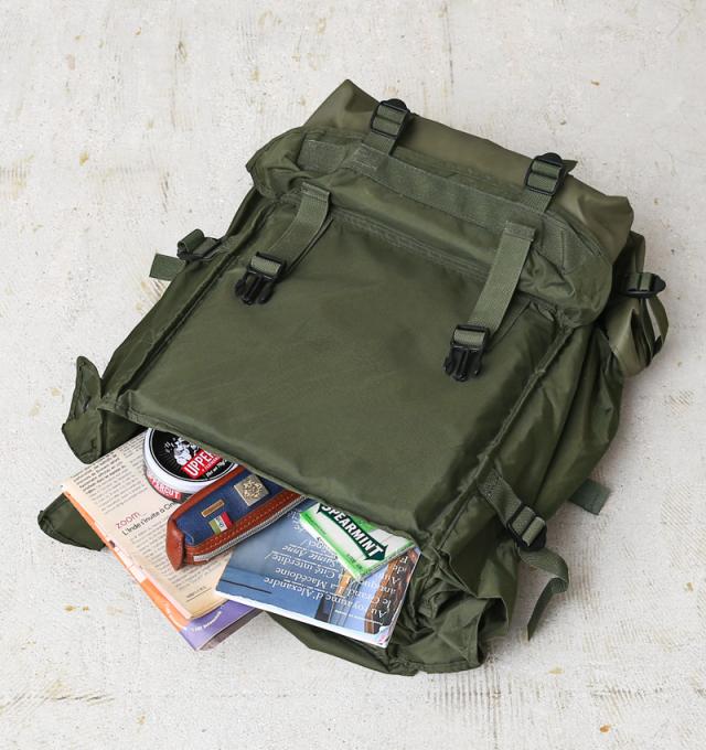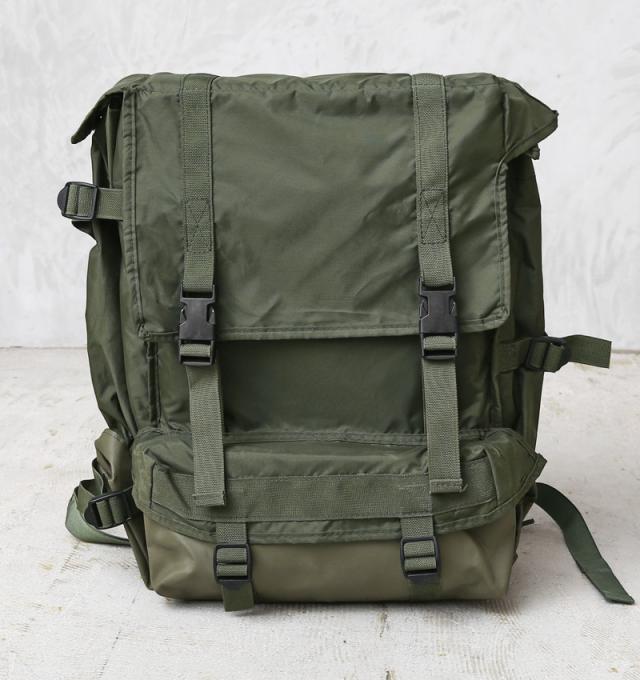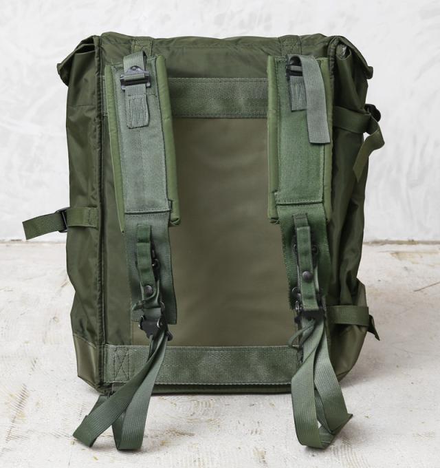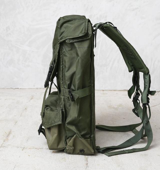米軍で通信機器ケース、ラジオケースとして使用されていたバックパックが入荷しました。ALICEパックと非常によく似た構造で、調節可能なショルダーストラップ、パッド入りのメインコンパートメント、外側下部フロントポケット、側面にフルレングスのポーチが備わっています。メインコンパートメントはアタッチメントで簡単に開閉し、精密機械を収納していただけあって、内部には厚手のウレタン素材が内蔵されていて収納物を保護してくれる作りになっています。