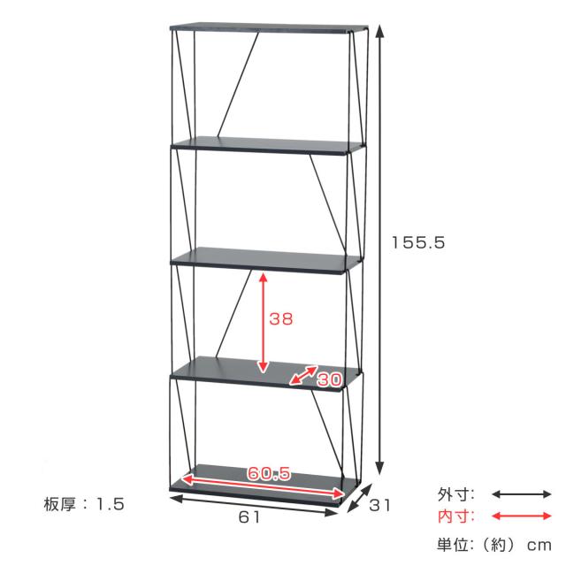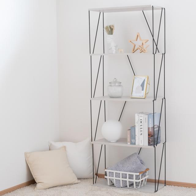 《 LH10555 簡単組立て 五段 コレクション 木目調 リビング 寝室 什器 ショップ 店舗什器 カフェ 本 絵本 ファイル ベッドサイド ソファサイド 玄関 家具 インテリア 和室 洋室 モダン 北欧 韓国インテリア 韓国風 カフェ風 淡色 スタイリッシュ グレー ホワイト 灰色 白 ナチュラル 約 幅61 奥行31 高さ160 cm センチ 一人暮らし ひとり暮らし オシャレ お洒落 模様替え 新生活 》