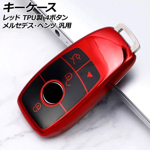 キーケース レッド TPU製 4ボタン メルセデス・ベンツ 汎用 AP-AS735-RD