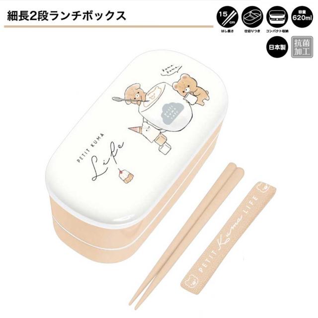 ランチボックス お弁当箱 女の子 向け 細長 プチクマライフ お箸付き バンド付き カミオジャパン おしゃれ で かわいい 文房具