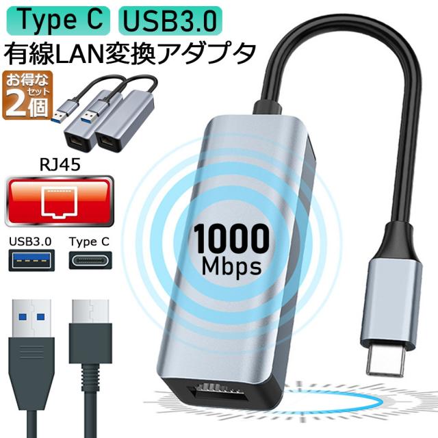 USB3.0 Type C LAN 変換アダプター 2個セット 有線LANアダプター 1000Mbps イーサネット USB3.0 USB-C 選べる ギガビット 高速転送 RJ45 Giga LAN 変換アダプター アルミ Windows Mac OS