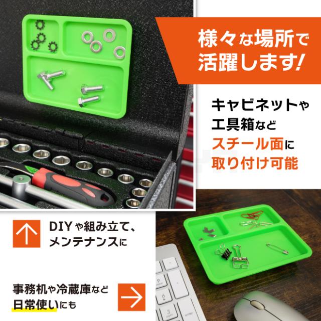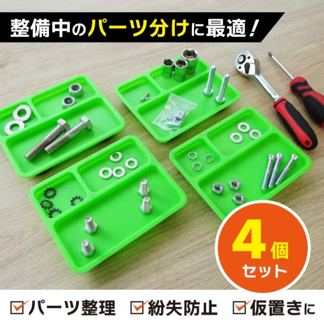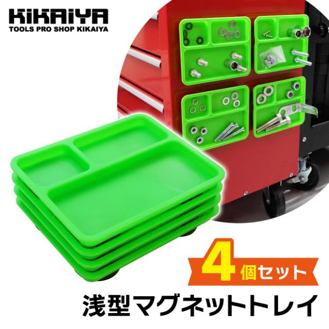 マグネットトレー 4個セット 緑 浅型 パーツトレーマグネット パーツ トレー 小物 部品 整理 マグネットトレイ KIKAIYA