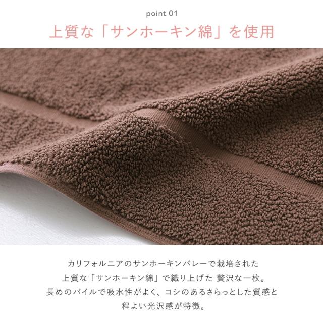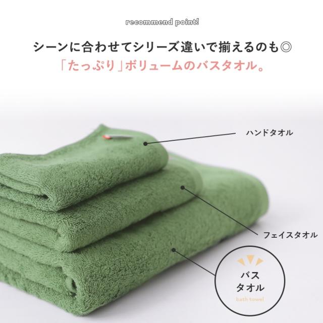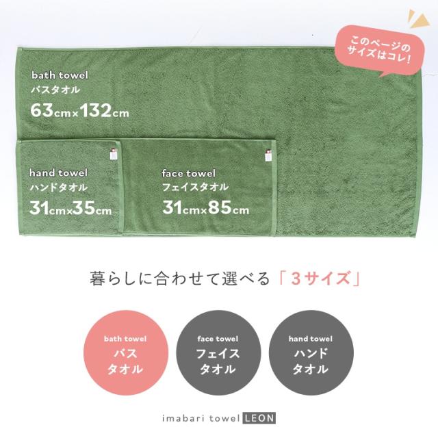 『日常を彩るキレイ色。』 使い続けて実感する、ふんわり感としっかり感。 バスタイムはもちろん、タオルケット使いでもしっかりとした大きさで身体を包み込むバスタオル。 シンプルながらも発色が濃く鮮やかな厳選したカラーバリエーションが魅力。シーンに合わせてシリーズ違いで揃えられるから、お好きな色で組み合わせたり、色を合わせて統一感を持たせたりとお部屋をトータルコーディネートできるのが楽しい♪ 安心の日本製、今治タオルブランドの上質なサンホーキン綿100%で織り上げた贅沢な一枚。長めのパイルで吸水性がよく、コシのあるさらっとした質感と程よい光沢感が特徴です。 まるでホテルライフを味わえるような、レオンバスタオルです。 |