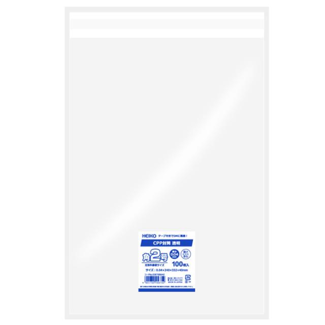 DMやポスティングの包装資材として最適な、テープ付きの透明CPP封筒です。封筒角2封筒と同規格で、A4サイズに対応しています。郵便は定形外扱いとなります。CPPフィルムはOPPフィルムと比べ透明度はやや落ちますが、柔軟で裂けにくい材質です。