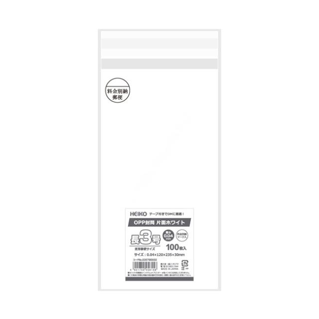 OPP封筒 長3 片面ホワイト 料金別納マーク入 100枚