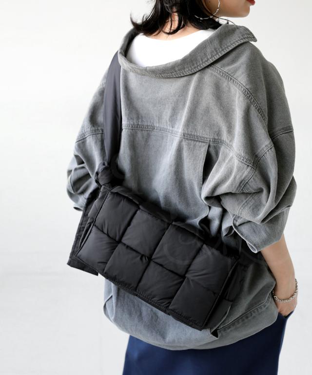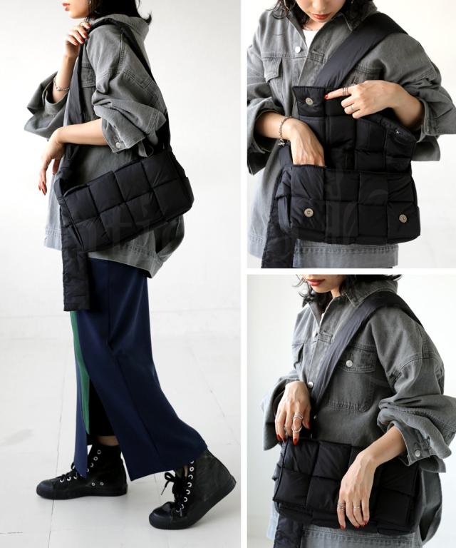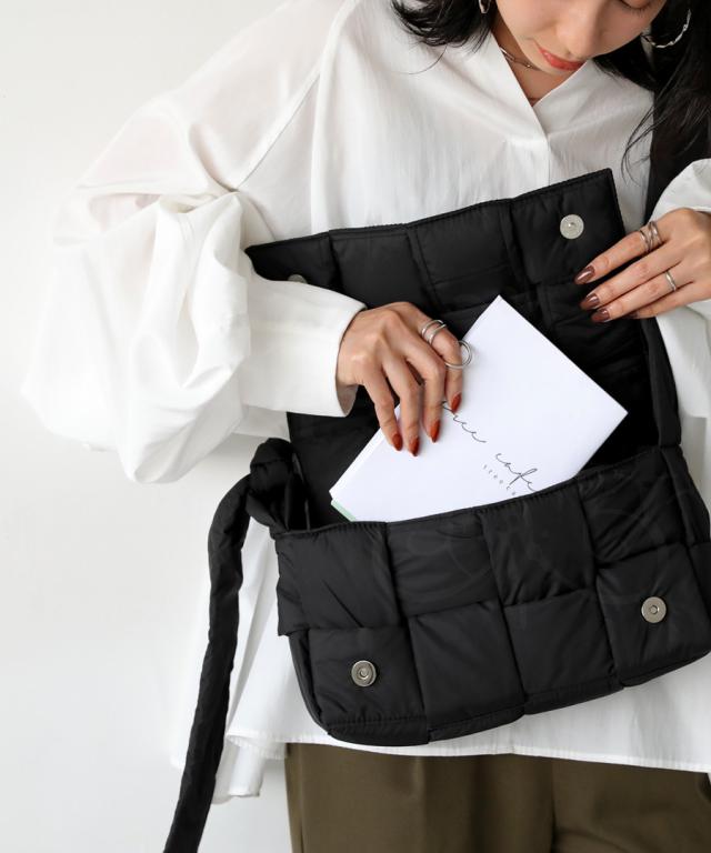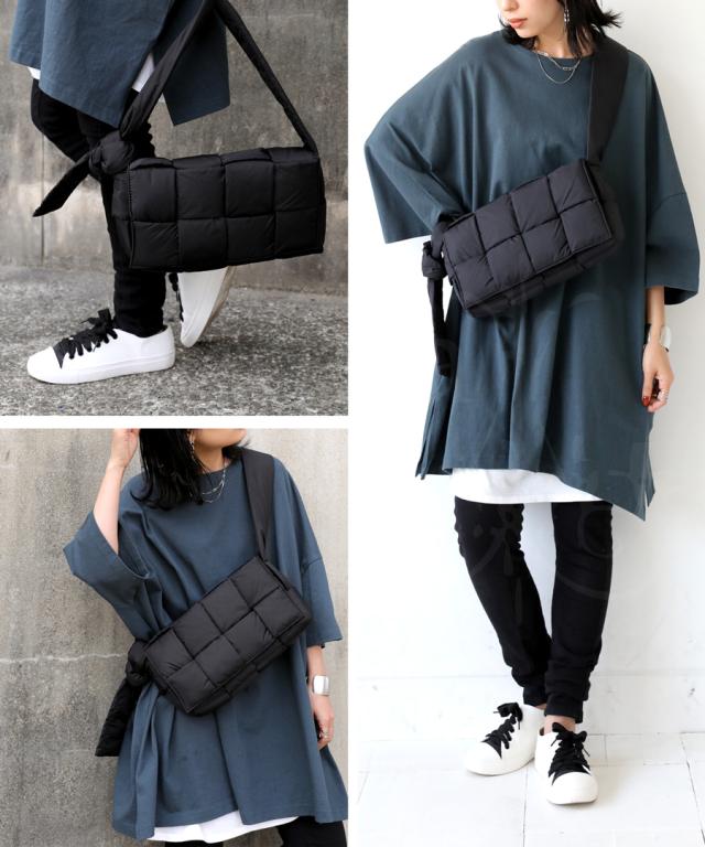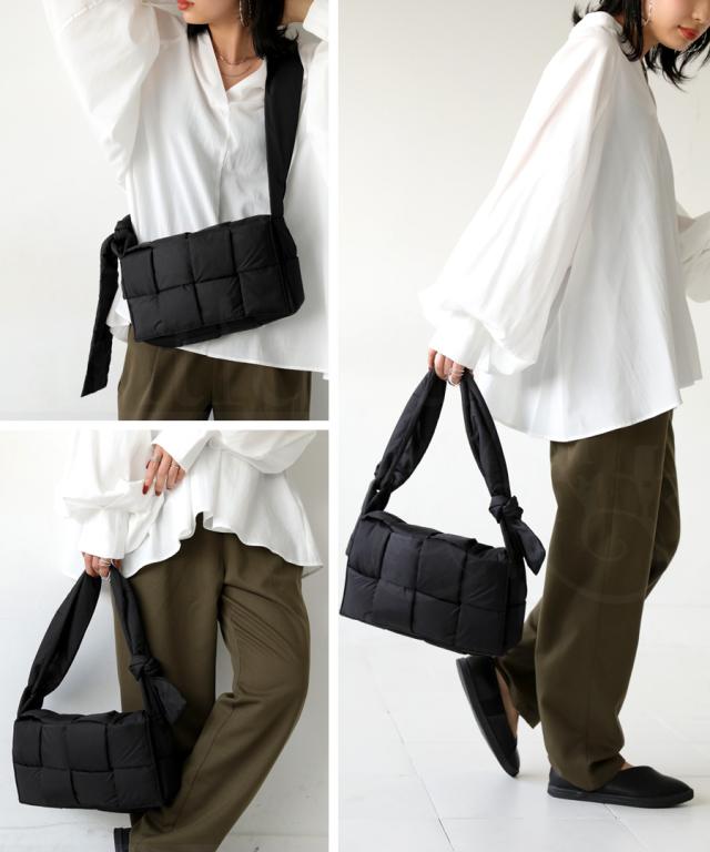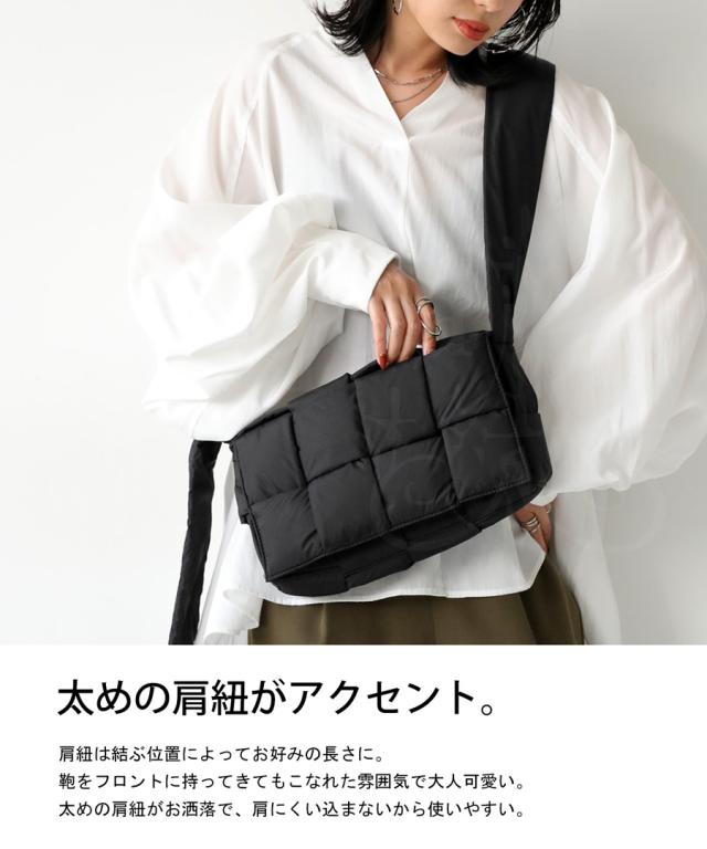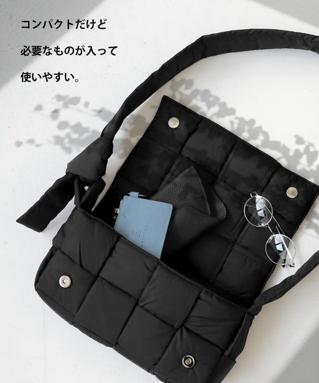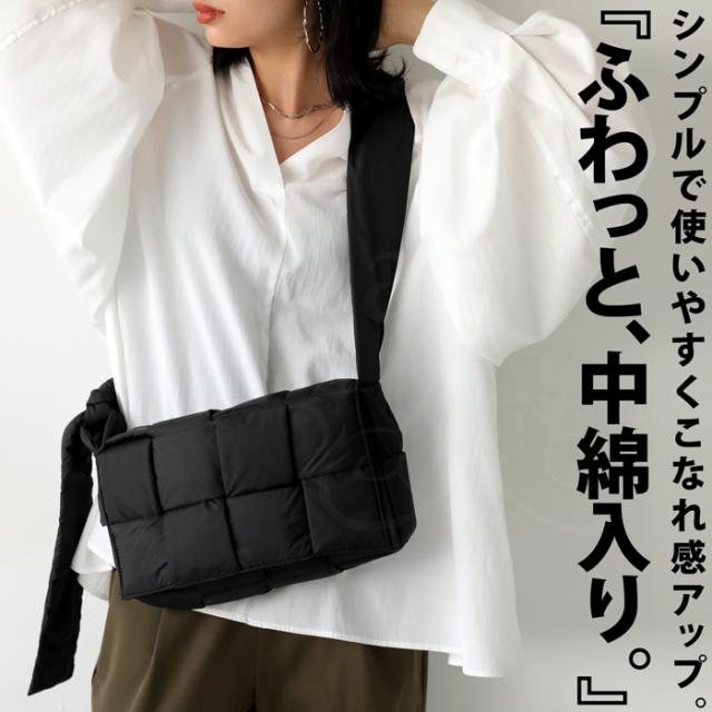 pb-00055 ショルダーバッグ ショルダー 肩掛け 斜め掛け 軽い ボリューム シンプル スクエア 中綿 編み込み ふっくら クッション ふわふわ 高級感 小さめ マチあり 内ポケット