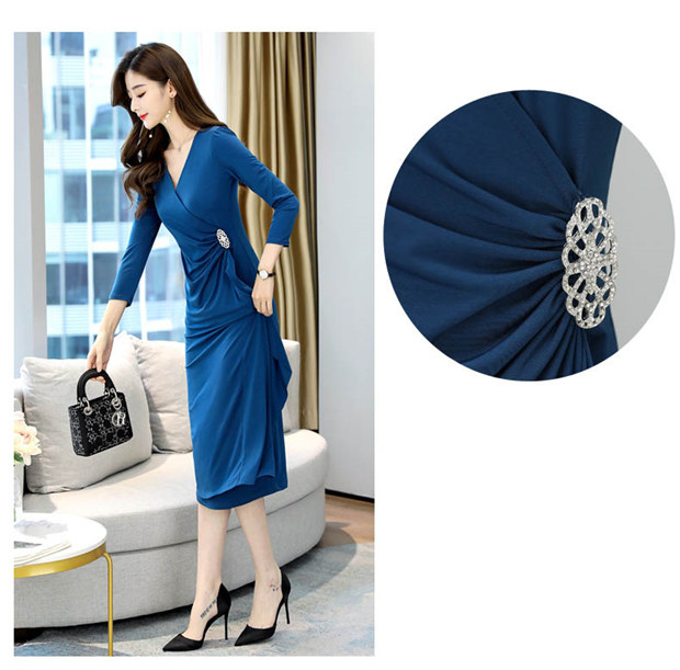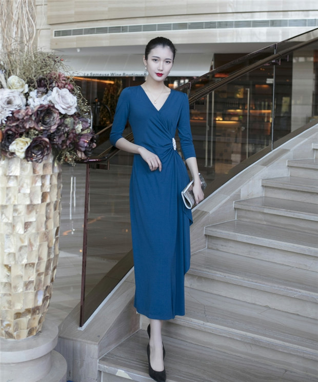 ドレス イブニングドレス 演奏会 結婚式 パーティードレス お呼ばれ クルージング 袖あり 大きいサイズ カシュクール 紺 赤 フォーマルドレス コンサート ステージ ad116c0c0la